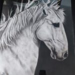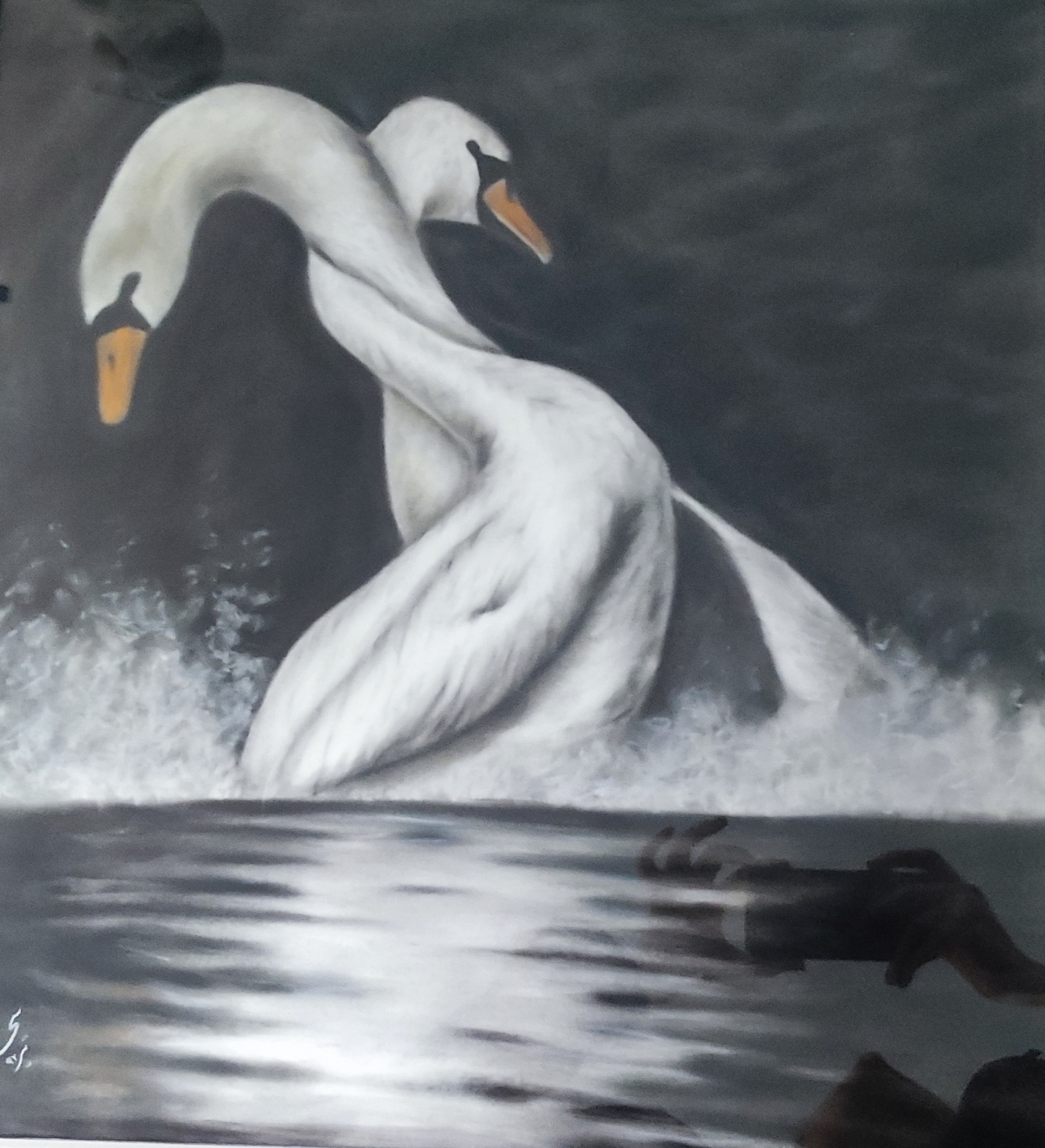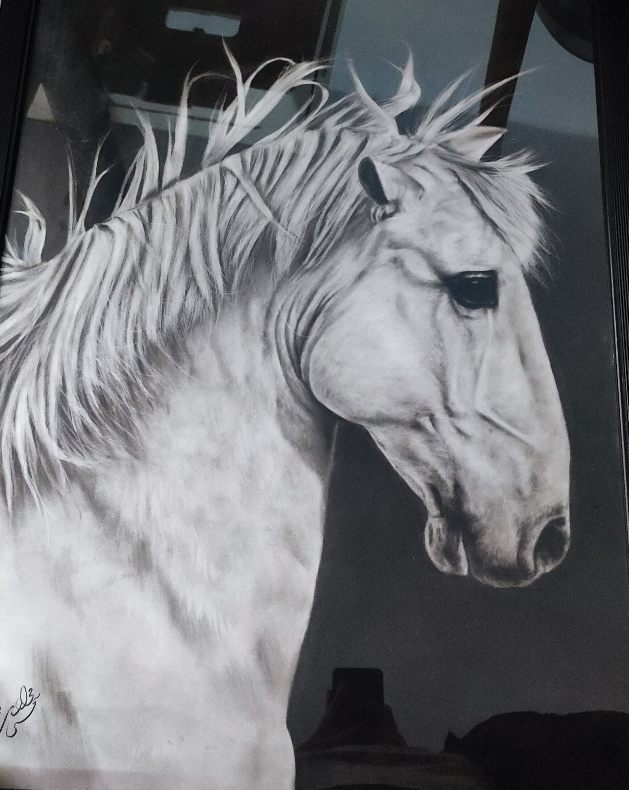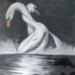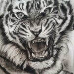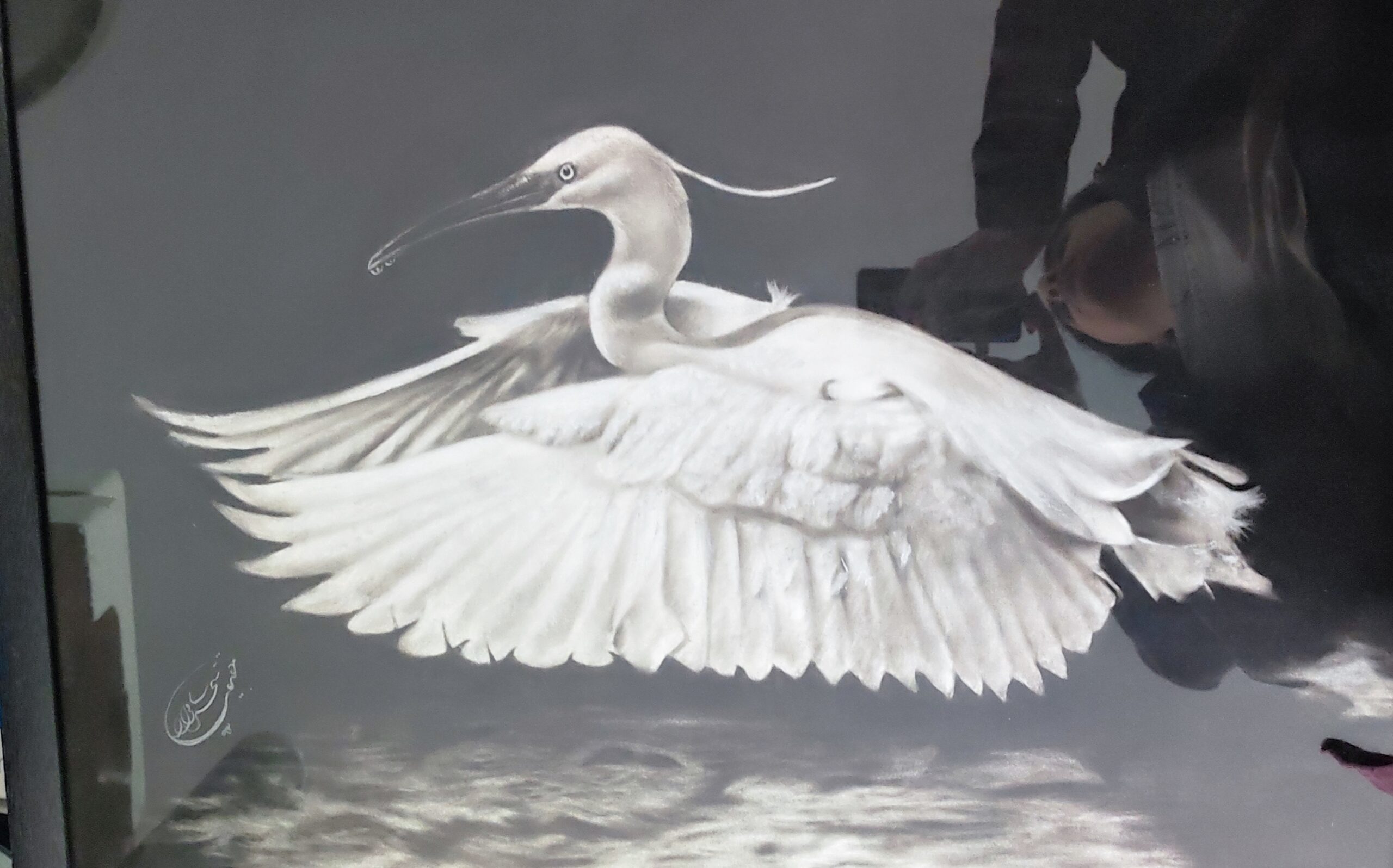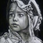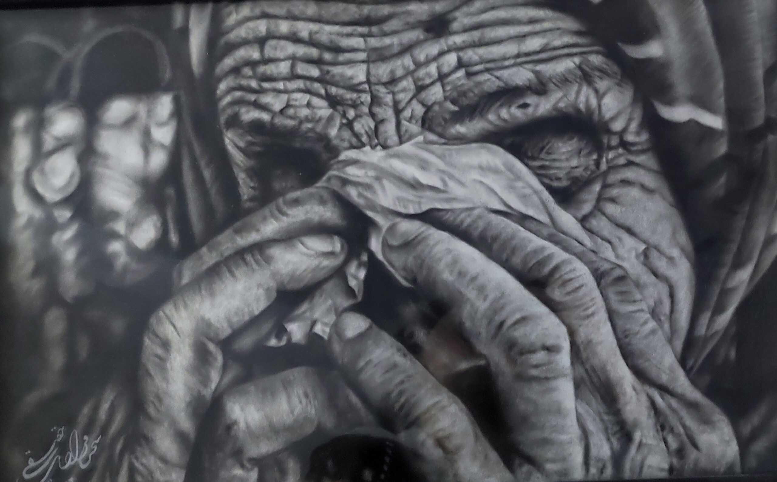 Diese Zeichnungen wurden unter Verwendung von Ruß- und Meeressteinstaub sowie verschiedenen Pinselwerkzeugen angefertigt. Um zusätzliche Farbakzente zu setzen, wurden in einigen Arbeiten Kreidepastelle eingesetzt. Diese Technik ermöglicht es, tiefe Kontraste und feine Details zu schaffen, die die Ausdruckskraft der Zeichnungen verstärken.