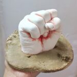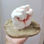 Ein genauer Abdruck der Hand mit hautfreundlichem Alginat, sorgfältig nachbearbeitet und bemalt, um die individuelle Struktur hervorzuheben.
