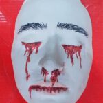 Mit Gipsbinden direkt vom Gesicht abgeformt, anschließend als Positivform ausgegossen, bearbeitet und von Hand bemalt, um Ausdruck und Charakter künstlerisch hervorzuheben.